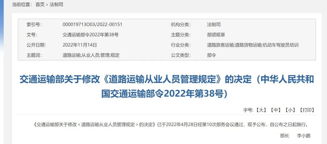 12月,;愤\輸又有新規(guī)正式實施,涉及通行新規(guī)、行業(yè)整治、從業(yè)人員管理等…… 公安部開展貨運整治行動 近日,公安部交通管理局召開全國視頻會,要求在年底前以片區(qū)為單位集中開展貨運專項整治行動,13省市區(qū)統(tǒng)一行動,嚴(yán)查;愤\輸車輛,持續(xù)至年底。 此次整治行動劃分為華北東北、華東中南、西北西南三大片區(qū),聚焦不同地區(qū)交通出行特點以及冬季物流運輸繁忙、惡劣天氣頻發(fā)、農(nóng)村出行隱患、疫情防控等方面交通安全風(fēng)險,有針對性地強化事故風(fēng)險防范措施,重點整治“兩客一危一貨”超速、超載、疲勞駕駛等交通違法行為。 危貨駕駛員從業(yè)管理新規(guī) 近日,交通運輸部公布了《關(guān)于修改〈道路運輸從業(yè)人員管理規(guī)定〉的決定》,新規(guī)自公布之日起實施。 從今開始,僅當(dāng)危貨駕駛員誠信考核等級為不合格時,才需要參加繼續(xù)教育,減輕了駕駛員負擔(dān)。 從事4.5噸及以下普貨運輸?shù)鸟{駛員可直接申請危險貨物運輸駕駛員從業(yè)資格。 同時,新規(guī)還落實“放管服”改革要求,落實不合理罰款清理要求,降低對貨運駕駛員罰款額度。