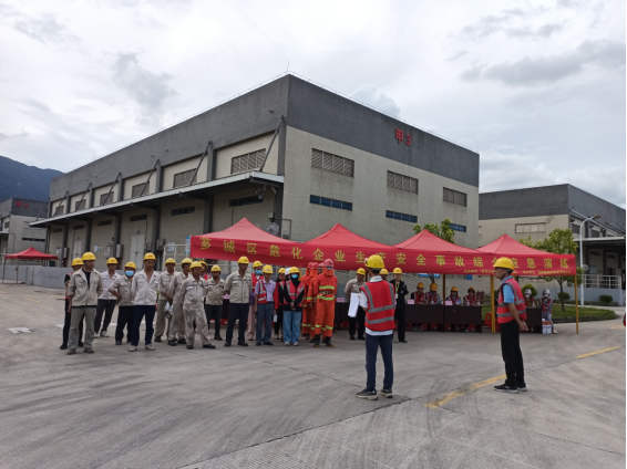 本次演練有薌城區(qū)應(yīng)急局管理局5位領(lǐng)導(dǎo)全程觀摩指導(dǎo),公司所有在崗人員參與,參與人員共39個(gè)人。應(yīng)急救援隊(duì)伍分成滅火組、堵漏組、工藝組、事故洗消組、事故監(jiān)測(cè)組、消控組、搜救組、醫(yī)療救護(hù)及后勤保障組、安全警戒及疏散組等9個(gè)應(yīng)急救援組。整個(gè)演練歷時(shí)22分鐘。演練過(guò)程圖片見(jiàn)附圖。