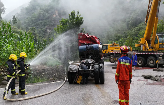 8月6日,四川青川縣青劍路大院回族鄉(xiāng)明珠社區(qū)小院路段處發(fā)生一起運(yùn)載硫酸車(chē)輛側(cè)翻事故,造成部分硫酸發(fā)生泄漏,所幸現(xiàn)場(chǎng)無(wú)人員傷亡。事發(fā)后,當(dāng)?shù)卦谘鼐河道設(shè)置了9道圍堰。目前,污染源已被截?cái)唷?br> 8月6日15時(shí)24分,廣元市消防救援支隊(duì)指揮中心接到群眾報(bào)警后,第一時(shí)間啟動(dòng)應(yīng)急預(yù)案,先后調(diào)派6車(chē)25人緊急趕赴現(xiàn)場(chǎng)處置,同時(shí)聯(lián)系政府、環(huán)保、公安、應(yīng)急等力量協(xié)同配合。 到達(dá)事故現(xiàn)場(chǎng)后,消防救援人員立即劃定警戒區(qū)域,會(huì)同環(huán)保部門(mén)對(duì)泄漏硫酸采取用沙土圍堰進(jìn)行攔截,投放生石灰中和硫酸,并持續(xù)對(duì)泄漏氣體爆炸濃度進(jìn)行監(jiān)測(cè)。 16時(shí)35分,槽罐車(chē)內(nèi)硫酸液體液位已基本下降至泄漏口處。經(jīng)現(xiàn)場(chǎng)會(huì)商研判,消防救援人員利用防酸自吸泵進(jìn)行倒灌處理。 8月7日01時(shí)許,現(xiàn)場(chǎng)已倒出罐體約4噸液體硫酸,還剩約7噸液體硫酸。由于突降暴雨,現(xiàn)場(chǎng)指揮部商議決定暫停倒灌,使用塑料薄膜保護(hù)充裝口,待雨停后再進(jìn)行倒灌。 截至12點(diǎn)10分,現(xiàn)場(chǎng)處置完畢,此次事故未造成人員傷亡。