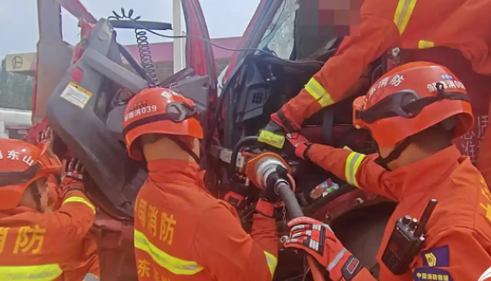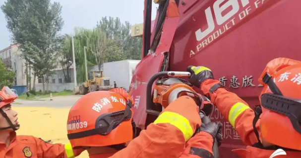 8月7日13時32分,在濱州鄒平市魏橋鎮(zhèn)金橋大道發(fā)生一起油罐車相撞事故,情況緊急,急需救援。消防救援人員到達(dá)現(xiàn)場后看到,事故發(fā)生在一個十字路口,由南向北行駛的油罐車撞上由西向東正常行駛的半掛車車廂,導(dǎo)致半掛車車廂側(cè)翻,車廂內(nèi)玉米傾瀉一地,油罐車駕駛室嚴(yán)重變形,駕駛員頭部鮮血淋漓,雙腿被卡在駕駛室內(nèi)無法脫困。 消防救援人員首先利用液壓破拆工具組對駕駛室車門進(jìn)行破拆,仔細(xì)觀察駕駛員雙腿被卡情況,并詢問是否有其他受傷部位。隨即消防救援人員利用液壓擴(kuò)張器對變形駕駛室進(jìn)行擴(kuò)張,增大被困駕駛員腿部救援空間,同時車內(nèi)消防救援人員扶住駕駛員身體,并不斷安慰被困人員情緒。 經(jīng)過10分鐘的緊張救援,消防救援人員將司機(jī)被卡的雙腿成功抽出,抬上救護(hù)車送往醫(yī)院。