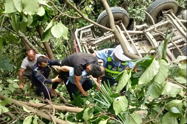 08月07日16時(shí),一輛重型罐式貨車(chē)在云南省昭通市永善縣蓮峰鎮(zhèn)文潭村毛拱橋路段一急彎處,與對(duì)向行駛的一輛重型罐式貨車(chē)會(huì)車(chē)時(shí),右后輪駛出路面,車(chē)輛翻到30余米的深谷。 接到出警指令后,蓮峰鎮(zhèn)派出所所長(zhǎng)郝正德、交警中隊(duì)長(zhǎng)馬宏率民警輔警共12人趕赴文譚村交通事故現(xiàn)場(chǎng),隨即聯(lián)系蓮峰鎮(zhèn)衛(wèi)生院派出救護(hù)車(chē)和醫(yī)務(wù)人員趕往救助。 當(dāng)民警趕到現(xiàn)場(chǎng)時(shí),發(fā)現(xiàn)山谷十分陡峭,谷深約30米,駕駛員被困在嚴(yán)重變形的駕駛室,不知生死。因車(chē)輛離谷底還有五六米距離,駕駛室被懸在空中無(wú)著力點(diǎn)。郝所長(zhǎng)急中生智,安排救援人員攀著樹(shù)枝進(jìn)入駕駛室,里面只有駕駛員1人,已經(jīng)昏迷不醒,但還有呼吸。 這時(shí)候,路過(guò)的數(shù)名駕乘人員也參加到救援隊(duì)伍,迅速形成了一支20多人的救援隊(duì)伍。駕駛員被小心翼翼移除駕駛室后,郝所長(zhǎng)將他背在肩上。救援隊(duì)伍攀著樹(shù)枝、野草、巖石等,你拉我扶,以背著傷者的郝所長(zhǎng)為核心著力點(diǎn),在懸崖峭壁慢慢往上攀爬。天氣炎熱,汗水濕透了他們的衣服。 經(jīng)過(guò)40分鐘努力,傷者被成功救上了公路,由急救的醫(yī)療人員緊急處理后,直接將送往昭通市第一人民醫(yī)院救治。 經(jīng)查,駕駛員高某欣駕駛重型罐式貨車(chē)滿(mǎn)載水泥,從蓮峰鎮(zhèn)向大興鎮(zhèn)方向行駛,當(dāng)車(chē)行至蓮峰鎮(zhèn)文譚村毛拱橋急彎路段,突遇對(duì)向駛來(lái)一輛重型罐式貨車(chē),因山區(qū)彎道,路面狹窄,高某欣在會(huì)車(chē)過(guò)程中,右后輪駛出路面,車(chē)輛翻下30米深谷。幸運(yùn)的是,在事故中駕駛員高某欣只是被震暈,傷情不重,經(jīng)醫(yī)院搶救,目前已脫離生命危險(xiǎn)。