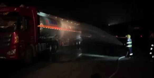 9月10日凌晨1時(shí)多,四川廣元市朝天區(qū)中子鎮(zhèn)董家梁加油站附近一輛載有33噸過(guò)氧化氫罐車(chē),在停放時(shí)罐頂上的液體輸入口發(fā)生爆炸,將頂蓋炸飛后發(fā)生泄漏。 事故發(fā)生后,當(dāng)?shù)叵谰仍块T(mén)迅速調(diào)派3個(gè)消防救援站,共6車(chē)43人趕赴現(xiàn)場(chǎng)處置。救援人員趕到現(xiàn)場(chǎng)后,經(jīng)詢問(wèn)現(xiàn)場(chǎng)相關(guān)人員后了解到,發(fā)生爆炸后罐內(nèi)的過(guò)氧化氫液體沿著地勢(shì)向低洼處流淌,大量揮發(fā)性刺激氣體冒著白煙,充斥著事故區(qū)域。周?chē)用褫^多,一旦遇到明火很有可能再次發(fā)生爆炸,情況十分緊急。 現(xiàn)場(chǎng)指揮員立即組織2名指戰(zhàn)員著輕型防化服,對(duì)事故車(chē)輛泄漏部位進(jìn)行偵查,發(fā)現(xiàn)泄漏口較大,無(wú)法對(duì)其采取堵漏措施。救援人員利用水槍對(duì)事故罐體進(jìn)行全面稀釋冷卻、利用沙土等堵截液體流淌。 當(dāng)?shù)卣枭⒅苓?公里內(nèi)群眾,協(xié)調(diào)3臺(tái)灑水車(chē)不間斷供水,交警等部門(mén)積極做好作業(yè)現(xiàn)場(chǎng)車(chē)輛、人員、用電、用火管控,設(shè)置多道警戒線,確保救援現(xiàn)場(chǎng)安全。 因事故發(fā)生地處于居民區(qū),經(jīng)與相關(guān)部門(mén)和專(zhuān)業(yè)人員商討,待罐體冷卻降溫后將事故車(chē)輛轉(zhuǎn)移至安全空曠地帶后再行處置。經(jīng)過(guò)當(dāng)?shù)卣、?yīng)急、公安、消防的協(xié)同配合,連續(xù)奮戰(zhàn)6小時(shí)后,今天上午7時(shí)多,事故車(chē)輛被轉(zhuǎn)移至空曠地帶繼續(xù)進(jìn)行掃水冷卻降溫,待車(chē)內(nèi)過(guò)氧化氫排放完畢后,視情況開(kāi)展下一步處置。
