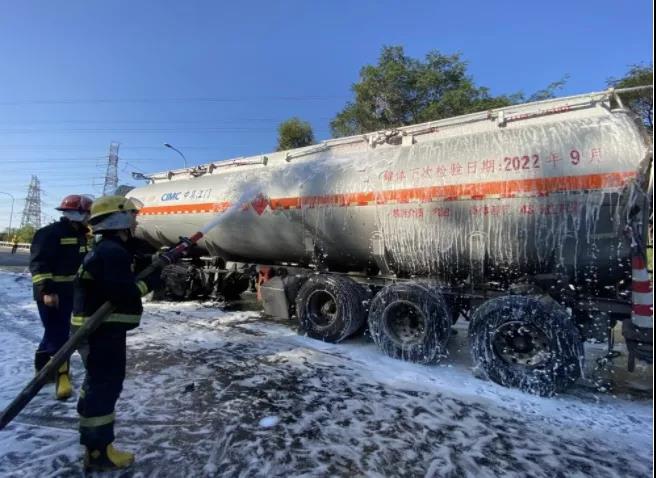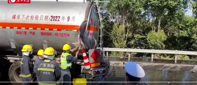 廣州市消防救援支隊(duì)12月7日通報(bào),12月6日12時(shí),廣州市119指揮中心接到警情稱沈海高速北二環(huán)機(jī)場(chǎng)高速水瀝出口路段發(fā)生一起交通事故,一輛油罐車與一輛貨車相撞,現(xiàn)場(chǎng)有大量汽油泄漏,情況緊急。消防部門接到報(bào)警后迅速趕赴現(xiàn)場(chǎng)處置。 經(jīng)了解,涉事油罐車罐體由5個(gè)獨(dú)立油罐組成,其中前四個(gè)罐儲(chǔ)油26噸、尾罐5噸。 泄漏點(diǎn)在尾罐邊緣,在與貨車碰撞后撕開一條長(zhǎng)約20厘米、寬5厘米的不規(guī)則泄漏口。地面有大片油漬,并不斷流向路邊排水溝,空氣中彌漫著汽油味。 經(jīng)查明,現(xiàn)場(chǎng)已泄漏汽油3噸左右,如果不及時(shí)處置,后果將不堪設(shè)想。 了解情況后,現(xiàn)場(chǎng)消防指揮員隨即安排隊(duì)員成立了滅火冷卻組、搶險(xiǎn)組、疏散警戒組等作戰(zhàn)單元,協(xié)同民警對(duì)現(xiàn)場(chǎng)進(jìn)行警戒,禁止無(wú)關(guān)人員和車輛駛?cè)。滅火組做好防靜電措施后,在泄漏點(diǎn)架設(shè)水炮進(jìn)行泡沫覆蓋冷卻罐體,并稀釋現(xiàn)場(chǎng)泄漏的汽油, 多部門通力合作5個(gè)多小時(shí),終于將油罐車體泄漏口成功堵漏,并轉(zhuǎn)移罐體,完成現(xiàn)場(chǎng)污水回收。因處置科學(xué)及時(shí),事故未造成人員傷亡,事故原因還在調(diào)查中。