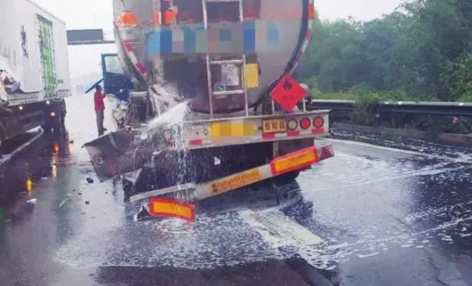 9月24日,二廣高速陽曲段發(fā)生一起油罐車因追尾導致罐體破裂,柴油嚴重泄漏的交通事故。為防止引發(fā)更嚴重的二次事故,各相關部門人員緊急趕赴現(xiàn)場,快速處置,消除險情。 這起事故發(fā)生在當日清晨6時30分許,位置在高速大盂服務區(qū)附近由南向北路段,一輛廂式貨車在此追尾一輛油罐車,油罐車裝有約30噸柴油。事故致罐體左后側破損,巨大的壓力下,罐里的柴油大量外泄,在高速路面流淌,情況非常危險。 事故發(fā)生后,高速路政、高速交警、消防救援等部門的人員迅速趕到現(xiàn)場,管控現(xiàn)場交通,試圖對罐體破損后進行堵漏,減緩泄漏速度,并協(xié)調(diào)進行倒罐事宜。對流淌至路面的柴油設置圍擋引流,再進行稀釋。 上午10時許,現(xiàn)場倒罐完畢,事故車上剩余的柴油被安全運離,險情基本得到控制。此次事故未造成人員傷亡。