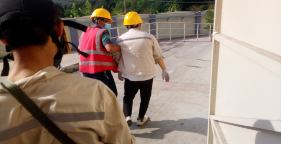 倉管員發(fā)現(xiàn)險(xiǎn)情及現(xiàn)場處置人員中毒,將中毒人員扶至安全區(qū)域。