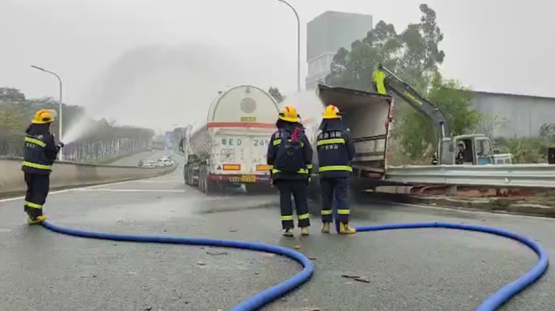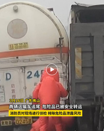 3月16日,廣東佛山一高速上發(fā)生交通事故,兩輛危險品運輸車相撞。 佛山市消防救援支隊立即調(diào)派3輛消防車,15名消防救援人員前往協(xié)助處置。 消防員到場后了解到,現(xiàn)場為兩輛危險品運輸車發(fā)生剮蹭,一輛拖掛車運載物品為壓縮天然氣,約為53立方。另一輛貨車運載物品為液化石油氣瓶,共計50個。 現(xiàn)場可能存在氣體泄漏及爆炸風(fēng)險,消防員立即進行警戒。 在排除危險品泄漏風(fēng)險之后,消防員采取措施對事故車輛進行控制,消除火災(zāi)隱患,并協(xié)助專業(yè)人員對危險品進行轉(zhuǎn)運。 經(jīng)過近4個小時的救援,現(xiàn)場處置完畢,事故車輛危險品均被成功轉(zhuǎn)運,現(xiàn)場無人員傷亡。