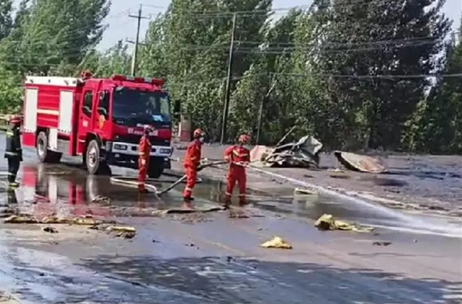 5月13日,山東泰安市泰山區(qū)化馬灣鄉(xiāng)南洪河村一村民向記者報料,一輛載有化學品的罐車在該村發(fā)生爆炸泄漏,不明化學品污染了村里的土地和河道。 事發(fā)時間為5月10日,南洪河村一輛大罐車突發(fā)爆炸,造成罐內(nèi)的液體向外泄漏,不斷散發(fā)出刺鼻的味道,車后大片區(qū)域被液體浸染,多名消防員手持水管正在對路面進行清洗。視頻顯示,耕地中的土壤也被液體浸染,農(nóng)作物枝葉上可見明顯黑色顆粒。 南洪河村村民屈先生(化姓)告訴記者,大貨車開始是氣體泄漏,后來整個罐體破裂,不明液體大量泄漏,污染了村中的河道和耕地。事發(fā)后,消防員到場對現(xiàn)場道路進行了清洗,生態(tài)環(huán)境局對空氣做了檢測,結果顯示空氣中含有致癌物質(zhì)。但被污染的耕地和水源怎么樣?至今無人給村民明確答復。 5月13日,記者致電化馬灣鄉(xiāng)人民政府,工作人員表示,事發(fā)當天,泰安市和泰山區(qū)兩級應急管理局和生態(tài)環(huán)境局等多部門都前往現(xiàn)場進行了處置,第一時間安排事發(fā)地附近的數(shù)十名村民去醫(yī)院進行了體檢,檢查結果是村民均無礙。此外,相關部門還把事發(fā)地的土壤、水源和氣體也都拿去進行了化驗,事發(fā)當天的數(shù)據(jù)確實稍微有些異常,但第二天再去化驗時,所有的數(shù)據(jù)均已恢復正常,目前善后工作仍在進行。 上述工作人員還介紹,載有不明化學液體的車輛當時停在路邊,駕駛員離開去吃飯了,先是車上罐內(nèi)氣體發(fā)生泄漏,強大的氣流將罐體撕開一道口子,導致罐內(nèi)液體泄漏。 泰山區(qū)生態(tài)環(huán)境局工作人員表示,他們事發(fā)當天下午現(xiàn)場對空氣、土壤和水源進行了取樣檢測,最新的檢測結果顯示,空氣已恢復正常,土壤準備按照有害物質(zhì)處理。