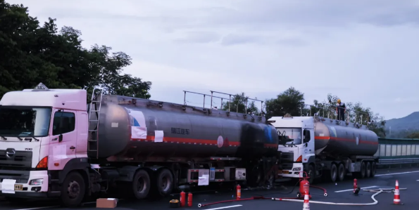8月1日13時38分,汕尾市應(yīng)急管理局接到報告,潮惠高速往惠州方向1250KM+80M(陸河路段)處一輛油罐車有著火冒煙情況。 接報后,市應(yīng)急管理局高度重視,立即通報給陸河縣應(yīng)急管理局要求立即派員前往核查處置,并與市公安局、市交通運(yùn)輸局、市消防救援支隊保持聯(lián)系實(shí)時了解現(xiàn)場處置情況,通過高速視頻監(jiān)控實(shí)時查看現(xiàn)場情況,同時派出專家組到現(xiàn)場指導(dǎo)處置。 陸河縣成立了由縣政府主要負(fù)責(zé)同志為指揮長的現(xiàn)場指揮部,公安、應(yīng)急、交通、住建、衛(wèi)健、消防等部門第一時間趕赴現(xiàn)場開展救援工作,并封閉事故路段。 經(jīng)緊急處置,車輛明火于13時55分被撲滅。經(jīng)現(xiàn)場確認(rèn),油罐車上汽油未發(fā)生泄漏,系左后側(cè)輪胎自燃冒煙起火。 事故發(fā)生后,事發(fā)路段實(shí)行雙向臨時管控,擁堵車輛全部進(jìn)行疏導(dǎo)。市應(yīng)急管理局及時協(xié)調(diào)有關(guān)企業(yè)派出接駁車對事故車進(jìn)行倒罐處理,并派出業(yè)務(wù)骨干和中石化;穼<亿s赴現(xiàn)場進(jìn)行指導(dǎo)。 因罐體油品溫度較高,救援人員持續(xù)幾個小時進(jìn)行淋水降溫處理,待溫度降低后進(jìn)行倒罐作業(yè)。事發(fā)油罐車上汽油已于21時完成倒罐,事發(fā)路段于21時45分左右恢復(fù)正常通行,至此險情處置完畢。由于滅火救援工作及時高效,本次事故未造成人員傷亡。