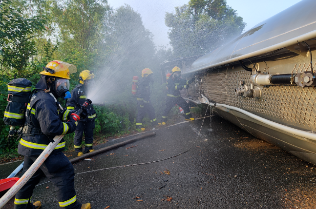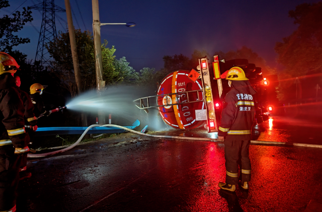 8月12日凌晨,在武漢市新洲區(qū)G318國道鳳凰鎮(zhèn)陳添奇村段,一輛實(shí)載約33噸甲醇的重型半掛牽引車發(fā)生側(cè)翻。武漢消防緊急調(diào)派消防員趕赴現(xiàn)場處置。 當(dāng)天,武漢市消防救援指揮中心接到報(bào)警后,迅速調(diào)派永安大道站出動(dòng)4輛消防車、20名消防員趕赴現(xiàn)場。消防員到達(dá)現(xiàn)場后,發(fā)現(xiàn)一輛十多米長的槽罐車整體側(cè)翻在道路一旁,罐體一側(cè)不斷有液體滲出,空氣中彌漫著刺鼻氣味。消防員立刻對周邊實(shí)施警戒,并設(shè)置水槍陣地對罐體泄露部位出水進(jìn)行稀釋。 隨后,公安、環(huán)保、街道等相關(guān)部門及應(yīng)急;穼<蚁嗬^趕到現(xiàn)場。在應(yīng)急;穼<业慕ㄗh下,先后調(diào)動(dòng)2輛大功率吊車,并聯(lián)合交管部門對該路段進(jìn)行雙向臨時(shí)交通管制,F(xiàn)場救援人員在專家指導(dǎo)下,實(shí)施“冷卻、扶正、倒罐、轉(zhuǎn)運(yùn)”的處置方案。在倒罐過程中,消防員用水槍不間斷進(jìn)行稀釋保護(hù)。 最終,經(jīng)過6個(gè)多小時(shí)連續(xù)奮戰(zhàn),33噸甲醇順利完成倒罐,并成功轉(zhuǎn)移至安全地帶。消防員在仔細(xì)檢查確認(rèn)現(xiàn)場無危險(xiǎn)后撤離。目前,事故原因還在進(jìn)一步調(diào)查中。