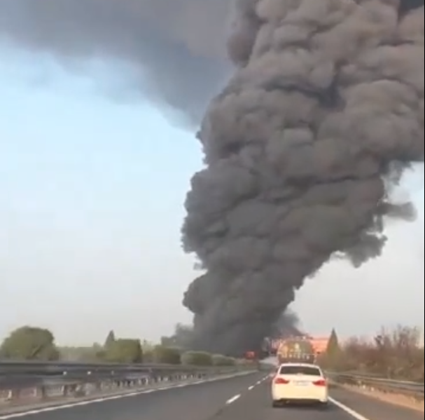 10月8日上午,有網(wǎng)民發(fā)布視頻,稱在山東聊城冠縣高速路段附近發(fā)生疑似油罐車追尾事故。視頻顯示,現(xiàn)場因交通事故引發(fā)火情,滾滾黑煙不斷向上空彌漫,距事故地點數(shù)公里外仍能看見。 10月8日中午,記者就事故情況聯(lián)系到冠縣應急管理局,一工作人員稱事故發(fā)生后工作人員已第一時間趕赴現(xiàn)場,“它(事故)是發(fā)生在冠縣高速東出口向西一公里左右的位置。”該工作人員也向記者補充道,“我們了解到的情況是沒有人員傷亡!倍鴮τ谝曨l中提到的油罐車追尾,該工作人員則回復稱“可能是貨車(追尾)。”