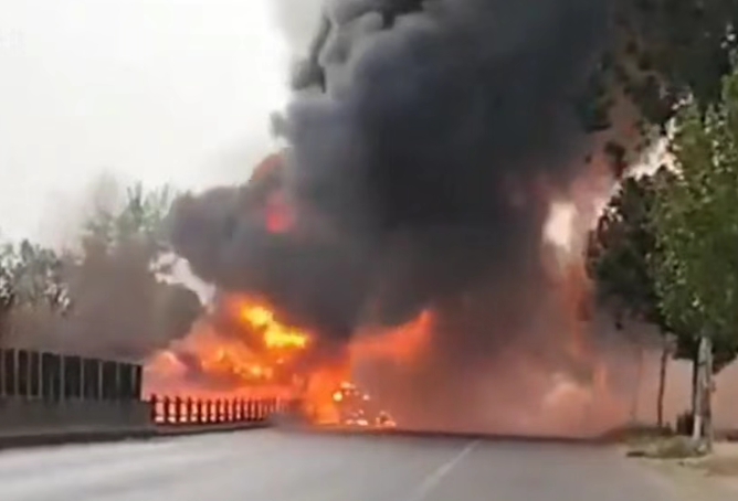 8日上午,記者從社交媒體平臺上看到,道路上黑煙滾滾,火光沖天,火勢出現(xiàn)蔓延,現(xiàn)場情形十分危急,附近還有路人遠(yuǎn)遠(yuǎn)圍觀不敢靠近。
