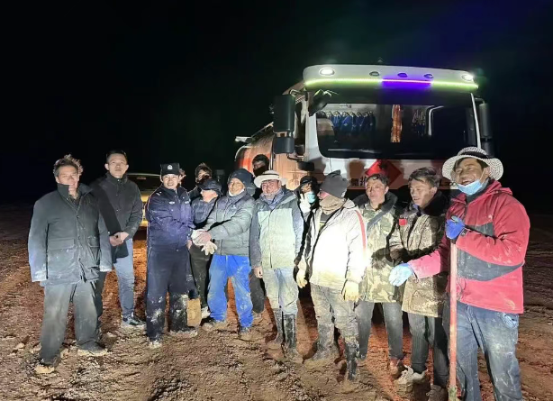 5月20日晚17:00時(shí)許,西藏雙湖縣公安局措折羌瑪鄉(xiāng)派出所接到緊急報(bào)警:一輛前往本鄉(xiāng)鎮(zhèn)送油的油罐車,在行駛至3村附近時(shí),因道路泥濘,車輛不慎駛?cè)肽酀糁斜焕,急需救援。接警后,派出所立刻響?yīng),迅速集結(jié)救援力量、攜帶專業(yè)救援設(shè)備,火速趕赴現(xiàn)場(chǎng)。到達(dá)現(xiàn)場(chǎng)后,民警發(fā)現(xiàn)滿載汽油的油罐車因自身重量大,深陷泥濘,普通車輛難以實(shí)施救援。民警隨即從2村和3村,緊急協(xié)調(diào)大貨車前來支援。 考慮到油罐車過重,直接拖拽存在安全隱患,民警便制定“減重緩?fù)稀狈桨,調(diào)配皮卡車,裝載油桶,將油罐車內(nèi)汽油逐步抽取轉(zhuǎn)運(yùn),最終抽出24桶散裝汽油;同時(shí),組織人員在附近采集沙子,裝填130余袋塑料袋,鋪設(shè)在救援路線上,增強(qiáng)車輛與地面的摩擦力,并將大貨車與被困油罐車通過鋼絲繩相連進(jìn)行拖拽。最終,在民警與全體救援人員的緊密配合下,經(jīng)過長(zhǎng)達(dá)12小時(shí)的連續(xù)奮戰(zhàn),成功將深陷泥濘的油罐貨車解救出來。