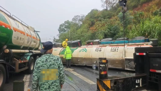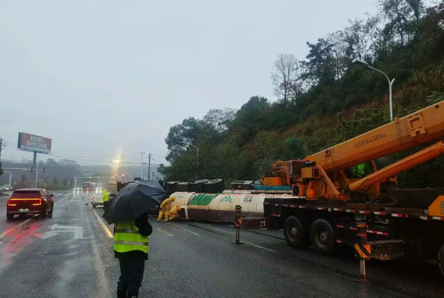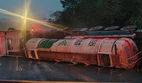 11月3日06時04分,湖南湘潭市消防救援支隊接到報警稱湘潭縣018縣道(往楊家橋收費站方向)一罐車發(fā)生側(cè)翻泄漏,車上載有濃度為32%的液堿。指揮中心立即調(diào)派金桂路站共3輛消防車、12名指戰(zhàn)員趕赴現(xiàn)場,同時聯(lián)動應(yīng)急、交通、環(huán)保公安等部門協(xié)同處置。06時22分,消防救援力量抵達(dá)事故地點。 經(jīng)偵查發(fā)現(xiàn),事故車輛為一輛槽罐車,車載約33噸、濃度32%的液堿,行駛過程中發(fā)生側(cè)翻,目前罐頂入孔處出現(xiàn)少量泄漏。根據(jù)現(xiàn)場情況,帶隊指揮員立即組織力量在泄漏點設(shè)置水槍,對泄漏的液堿構(gòu)筑圍堤封堵和封堵下水道,阻止泄漏的液堿進一步向外擴散,并迅速利用堵漏器材對泄漏點進行封堵。 同時,經(jīng)過現(xiàn)場指揮部及相關(guān)專家的評估決策,決定采用對罐體進行切割來輸轉(zhuǎn)倒罐的方案,進行本次事故處置。9時05分,救援人員使用自帶防爆轉(zhuǎn)料泵、軟管等裝備開始實施倒罐作業(yè)。經(jīng)過近4個小時的持續(xù)奮戰(zhàn),9時51分,救援人員成功將事故車槽罐內(nèi)液堿轉(zhuǎn)移至備用槽罐,順利完成倒灌作業(yè)。經(jīng)反復(fù)檢測確認(rèn),現(xiàn)場無危險后,全體人員安全撤離。