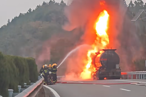 近日,江西上萬高速陳營鎮(zhèn)柳樹村段(上饒往南昌方向),一輛裝載30多噸31%濃度鹽酸的危化品運輸車突發(fā)大火,高溫炙烤下的鹽酸罐體隨時可能泄漏,后果不堪設(shè)想。 消防救援人員迅速趕到現(xiàn)場,槽罐車車頭及輪胎火勢明顯,滾滾黑煙飄向半空。鹽酸具腐蝕性,處置不當(dāng)易引發(fā)泄漏次生災(zāi)害。消防救援人員立即架設(shè)水槍,分別朝車尾及左右兩側(cè)起火部位噴射,壓制火勢。經(jīng)過近30分鐘的全力撲救,明火被成功撲滅。從火勢控制到罐體檢查,從鹽酸倒運到車輛清障,救援人員連續(xù)奮戰(zhàn)5個多小時。當(dāng)晚22時20分,30噸鹽酸全部安全倒罐,罐體隱患徹底消除。隨后,受損車輛被快速拖離,路面清障同步完成。此次火災(zāi)未造成人員傷亡,具體原因正在進(jìn)一步調(diào)查中。。